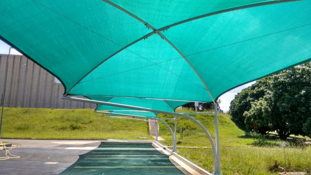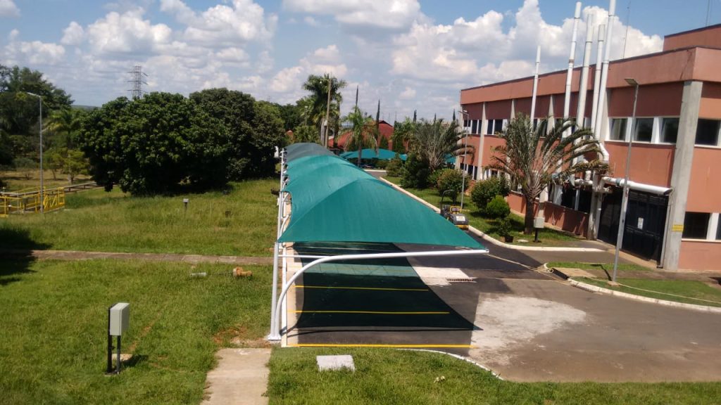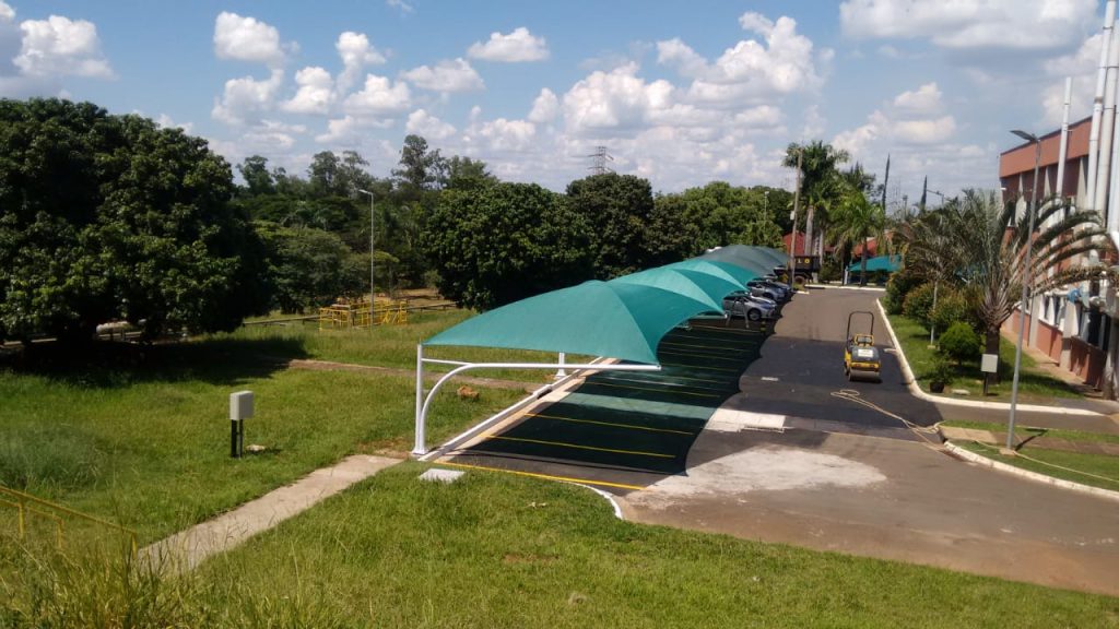 Neste projeto, a equipe especializada da Tecno Sombra® realizou a instalação de módulos de sombreamento simples no estacionamento da empresa Ajinomoto.