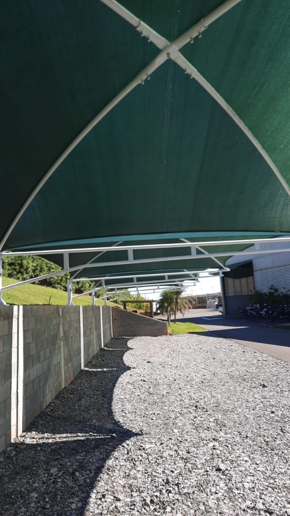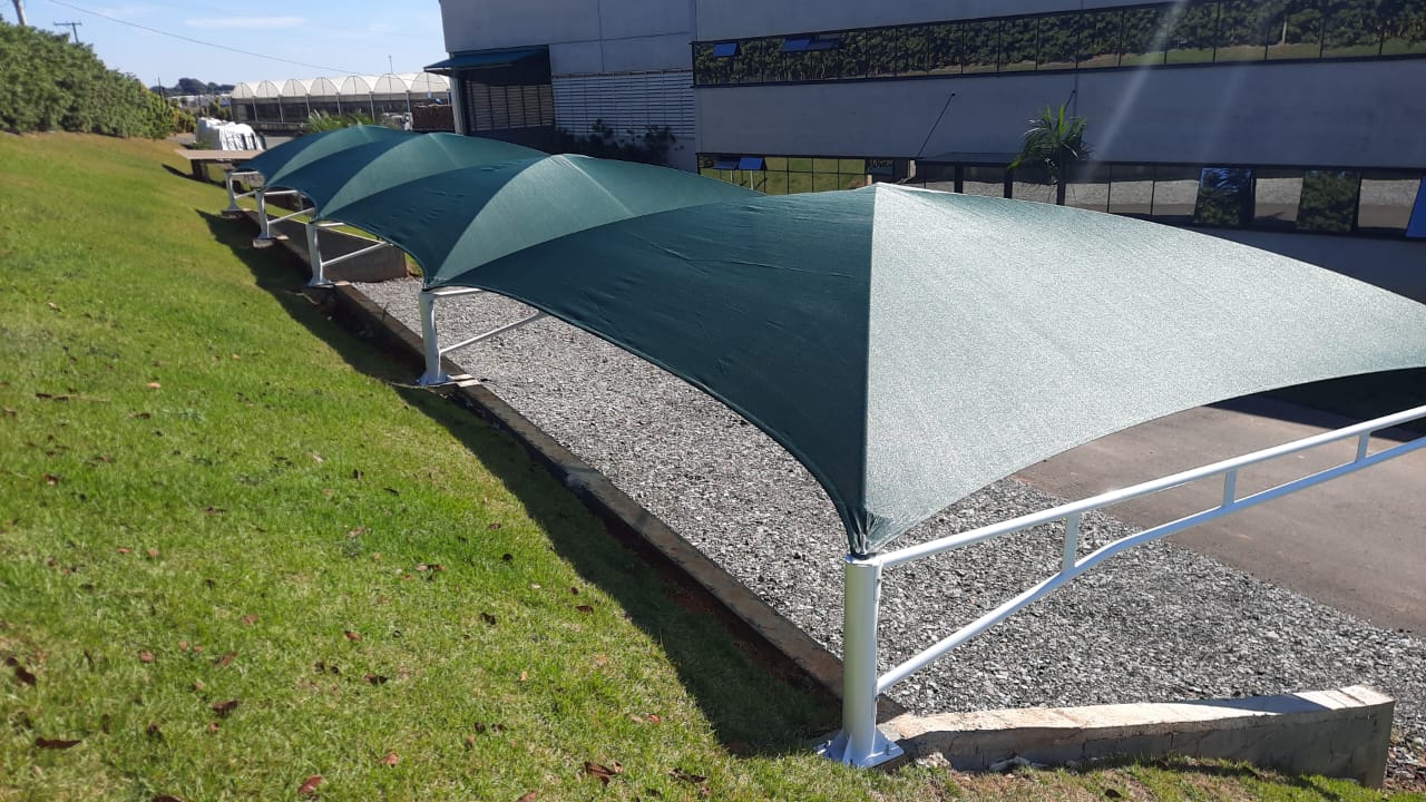 Neste projeto, a equipe de especialistas da Tecno Sombra® desenvolveu módulos de sombreamento especiais para a proteção de um espaço externo da empresa Área Verde Holambra.