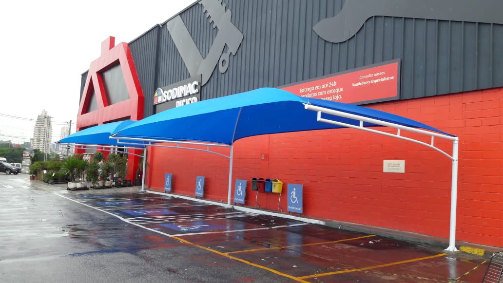 Os profissionais da Tecno Sombra® realizaram a instalação de módulos de sombreamento simples no estacionamento de uma unidade das lojas Sodimac Dicico.