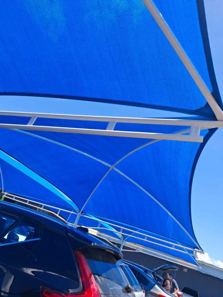 A equipe da Tecno Sombra® executou a aplicação de módulos de sombreamento simples e módulos de sombreamento duplos para o estacionamento do Supermercado Makim. O projeto contou com a expertise da Tecno Sombra® em todas as etapas, desde o planejamento e fundação até a montagem das estruturas e o acabamento das telas.