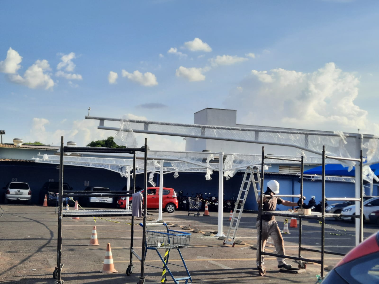 Módulos de sombreamento para estacionamento do Supermercado Makim