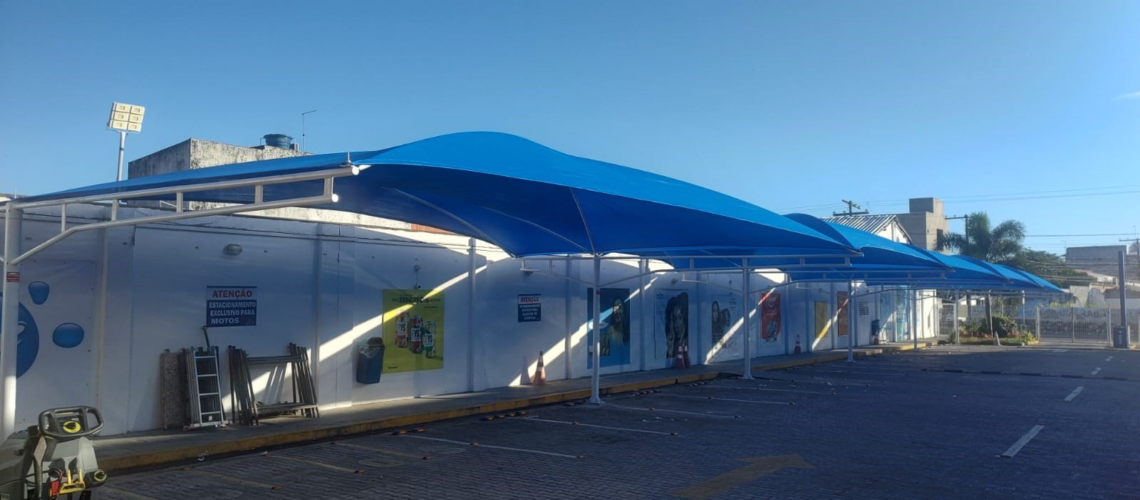 No total, foram 37 vagas cobertas, garantindo mais conforto e qualidade para os clientes do hipermercado durante as compras, além de valorizar a fachada, transmitindo robustez e evidenciando a preocupação da empresa com seus consumidores.